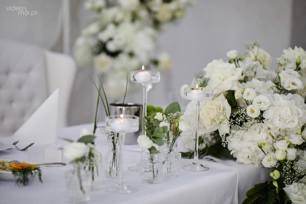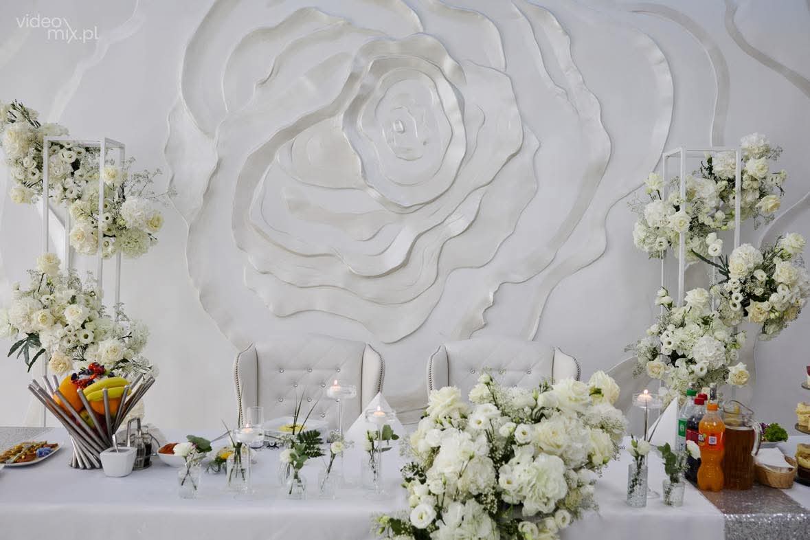 Galeria przedstawia 12 zdjęć z realizacji wesela w Rezydencji w Białej, ukazując unikalne dekoracje Ciupis Garden.